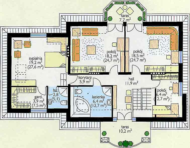 poddasze: 88,30 m2 (w nawiasach podano pow. podłogi) | ||||||||||