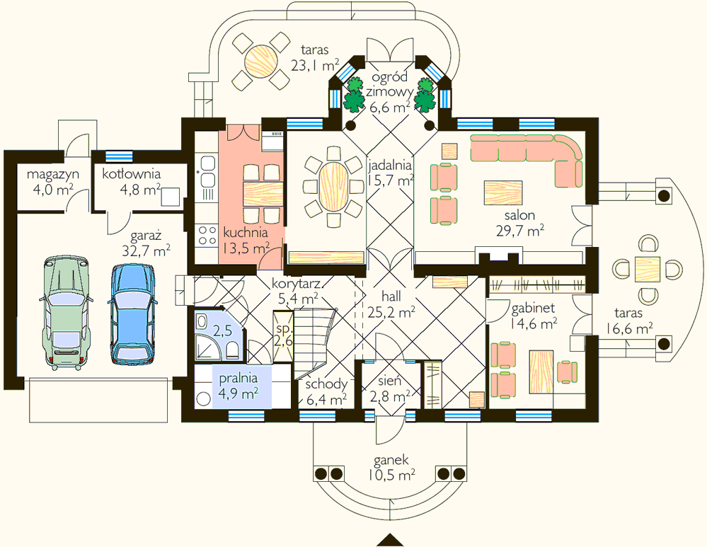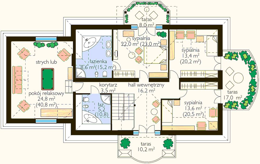 na parterze i na poddaszu (w tym jeden na parterze z podcieniem),