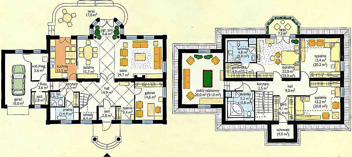 poddasze: 99,10 m2 (w nawiasach podano pow. podłogi) | ||||||||