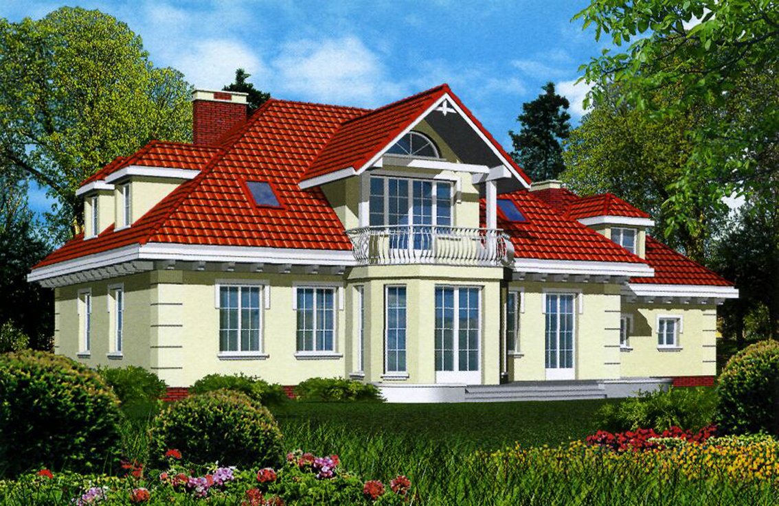 | Stylowy, wolno stojący dom jednorodzinny, z użytkowym poddaszem, z przybudowanym garażem na dwa samochody, bez podpiwniczenia lub z częściowym i pefnym podpiwniczeniem. Poddasze można dowolnie zaaranżować. Bardzo przestronny, funkcjonalny i tatwy w realizacji. Od strony ogrodu na poddaszu zaprojektowano obszerny, zadaszony taras nad ogrodem zimowym. Istnieje wersja w odbiciu lustrzanym oraz inne warianty oparte na podstawowych wymiarach tego domu. Propozycje