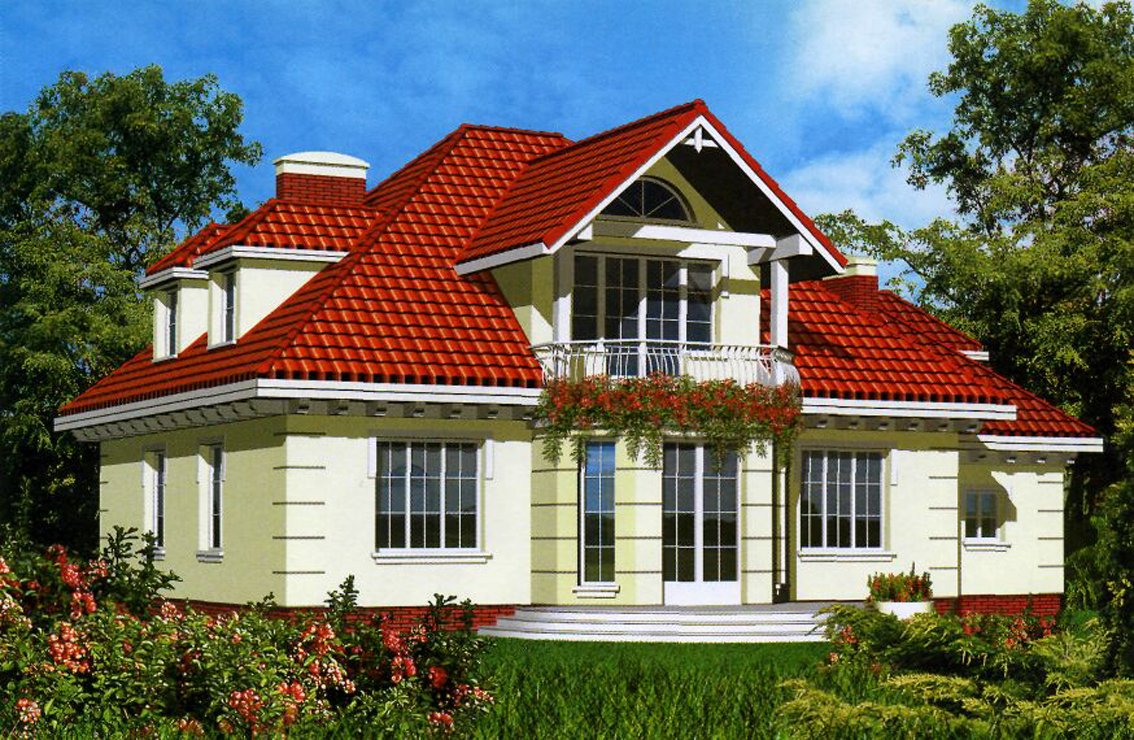 | Stylowy, wolno stojący dom jednorodzinny, z użytkowym poddaszem, z przybudowanym garażem na jeden lub dwa samochody, bez podpiwniczenia lub z częściowym podpiwniczeniem. Przestronny, bardzo funkcjonalny i tatwy w realizacji. Budynek został zaprojektowany w zwartej bryle na rzucie prostokąta z centralnie usytuowanym wejściem w postaci tradycyjnego ganka. Część mieszkalna została umieszczona na poddaszu, parter stanowi przestrzeń ogólnoużytkową. Od strony ogrodu, na poddaszu, zaprojektowano obszerny, zadaszony taras. Istnieje możliwość dowolnego zagospodarowania poddasza wg własnych potrzeb. Dostępne odbicie lustrzane projektu. Propozycje rozwiązań materiałowych: - fundamenty: