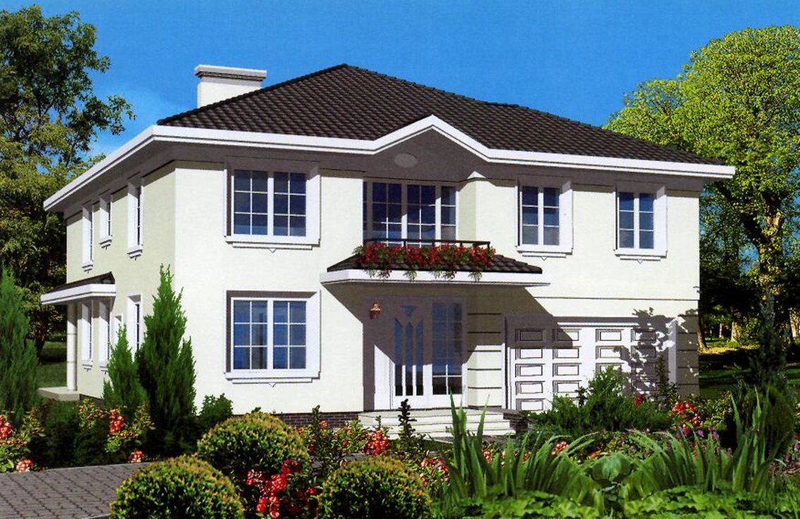 | Wygodny, komfortowy, elegancki, piętrowy dom jednorodzinny, z garażem na dwa samochody przeznaczony dla licznej rodziny. Dom nadaje się na wąską działkę. Rzut piętra można dopasować do własnych potrzeb. Istnieją wersje z częściowym podpiwniczeniem, z windą oraz o zmniejszonej szerokości. Propozycje