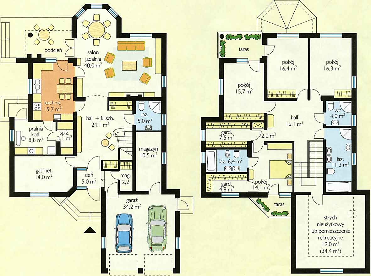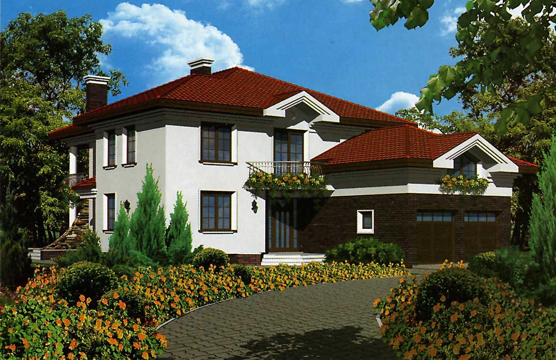 | Wygodny, wolno stojący dom jednorodzinny o czytelnym układzie funkcjonalnym, powiązany z otaczającym terenem. Na parterze usytuowano zewnętrzny kominek przy tarasie z podcieniem. Kształt tarasu może być zmieniony zgodnie z potrzebami inwestora. Istnieje wersja innego podziału pomieszczeń na piętrze z dostępem z hallu do balkonu frontowego. Wysokość domu -9,8 m. Propozycje