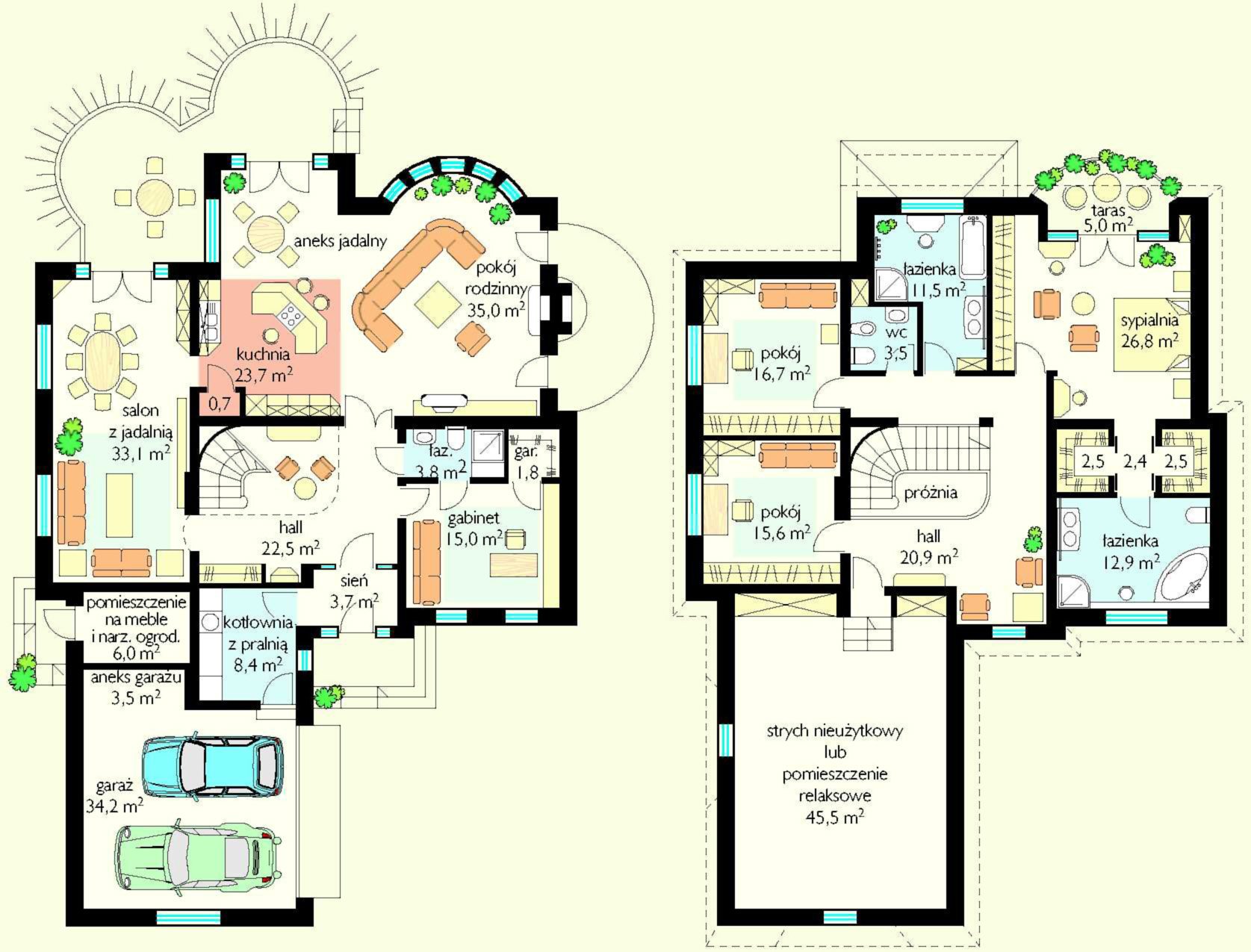| parter: 153,7 m2 + garaż 37,7 m2 |