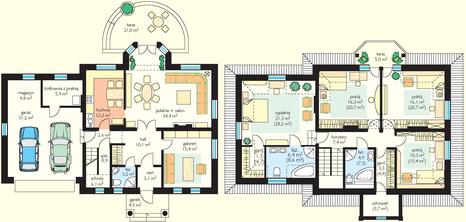 poddasze: 87,5 m2 (w nawiasach podano pow. podłogi) | |||||