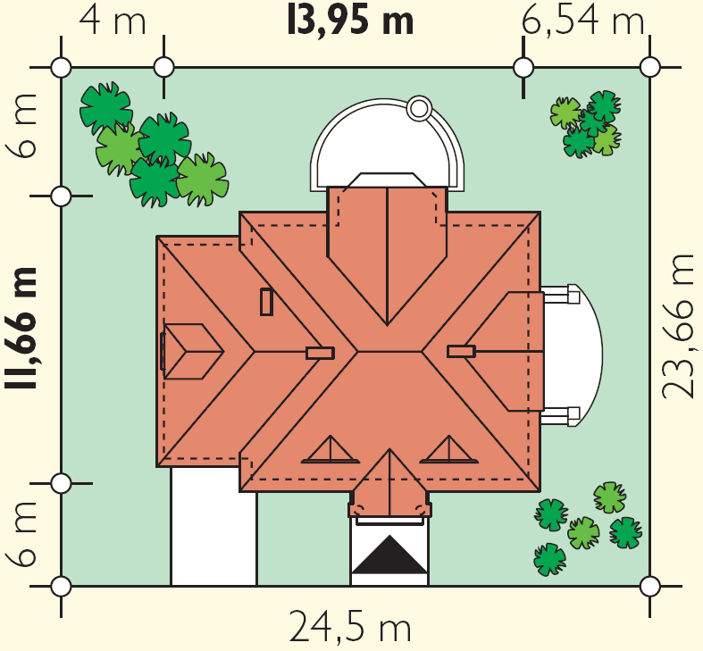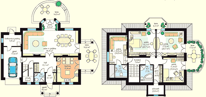 dwa tarasy na parterze i dwa na piętrze. Istnieje wersja w odbiciu