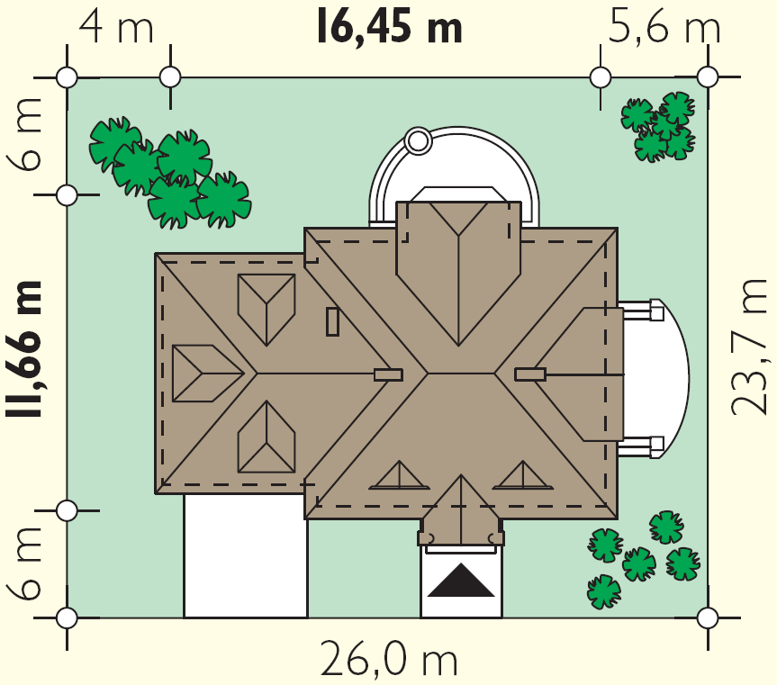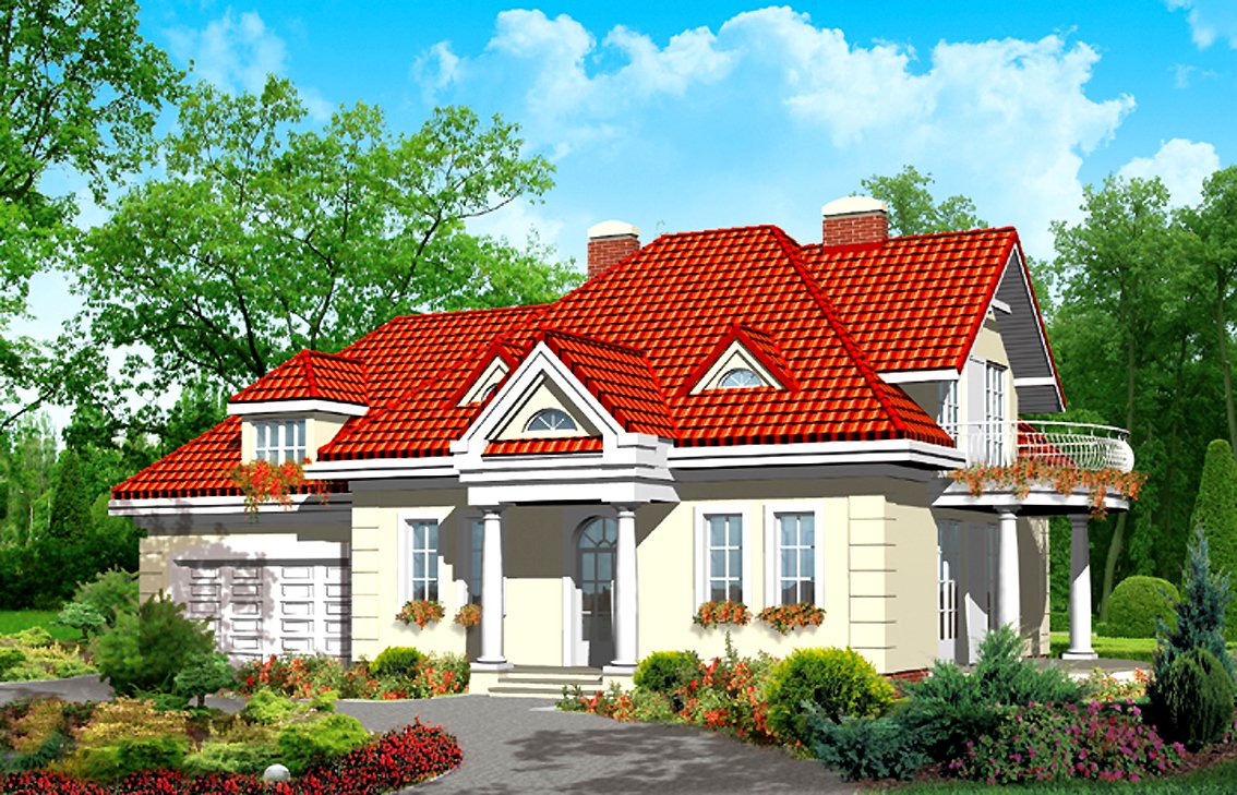 | Mały, stylowy dom jednorodzinny, parterowy, z użytkowym poddaszem. Bardzo funkcjonalny, przestronny, łatwy i tani w realizacji. Posiada tradycyjne wejście w postaci ganka z kolumnami oraz dwa tarasy na parterze i dwa na piętrze. Istnieje wersja w odbiciu lustrzanym. Możliwe podpiwniczenie części mieszkalnej. Dom jest atrakcyjny architektonicznie ze wszystkich stron. Układ przestrzenny można dostosować do własnych potrzeb. Wysokość domu wynosi 8,8 m. Powierzchnia zabudowy 160,7 m2. Propozycje