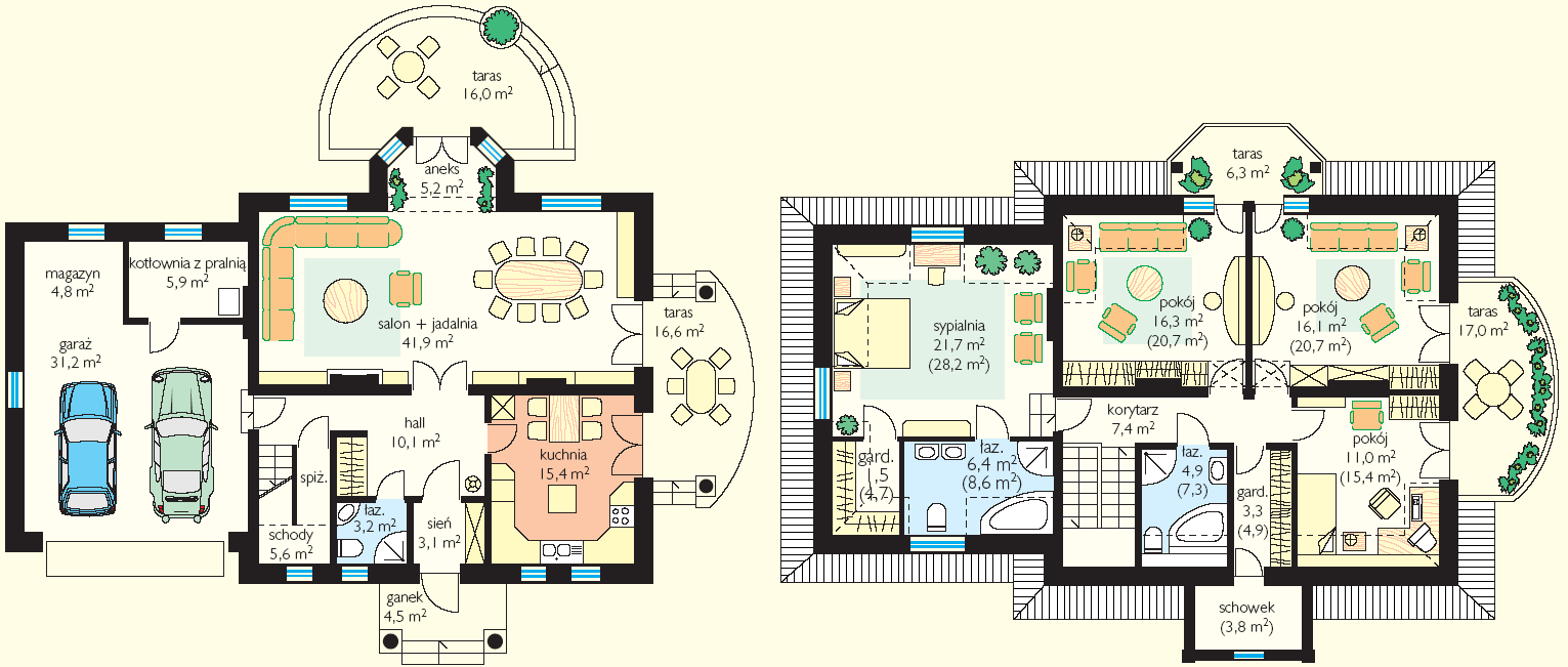 poddasze: 88,6 m2 (w nawiasach podano pow. podłogi) | ||||||